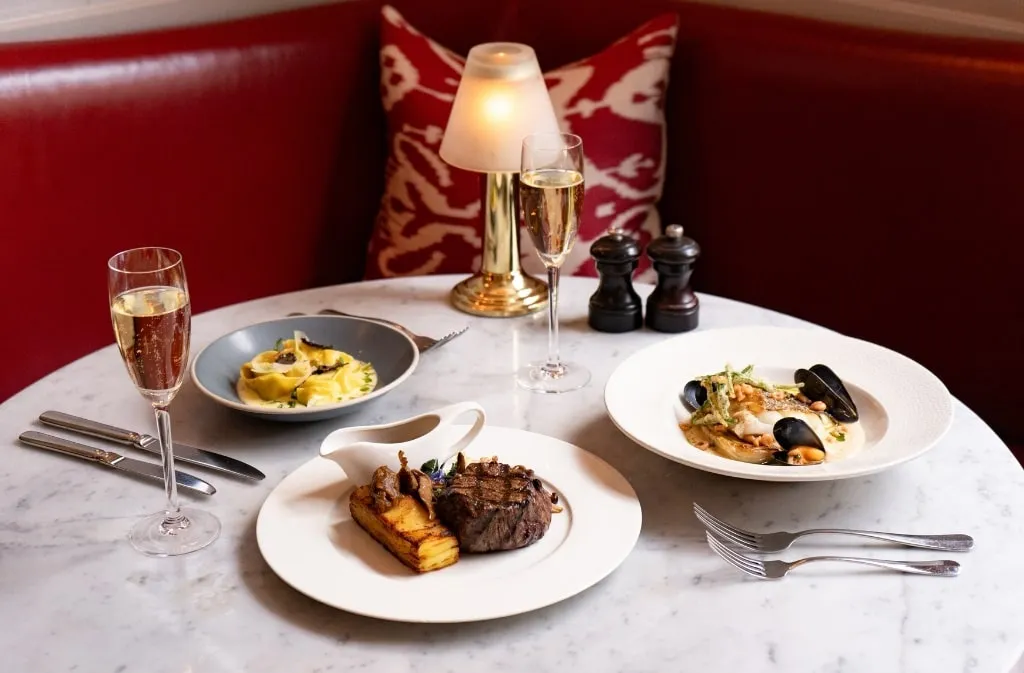 Love is in the air at 108 Brasserie, the perfect spot for a romantic dinner in Marylebone Village. Enjoy a special Valentine’s menu featuring Carlingford oysters or burrata and black truffle tortellini to start. Choose from roasted Atlantic cod or Surrey beef fillet for your main and finish with a blood orange tart with salted dark chocolate ice cream. Pair your meal with fine wines for an unforgettable evening.