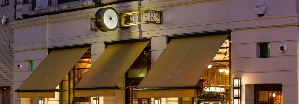 We have just recently been rather smitten with Fischer’s, at the top of Marylebone High Street. My family came from Germany originally, and though it is Austrian at Fischer’s the cuisine is very similar. You can get a nice Holstein schnitzel with the egg and anchovies on top. I took my daughter there, and she’s vegetarian, and she was raving about the vegetarian options. I must say her plate did look tempting, even without meat on it!